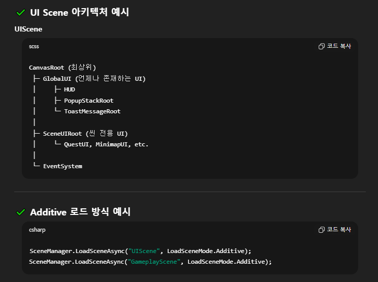 글로벌 UI와 Scene UI를 구분하면 이 구조가 더욱 빛을 발할 것으로 예상된다.
