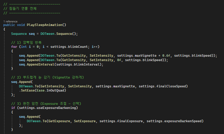 DOTween을 활용해 어떻게 자연스럽게 눈이 감기는 연출을 할 수 있을지에 대해 알아보았다.