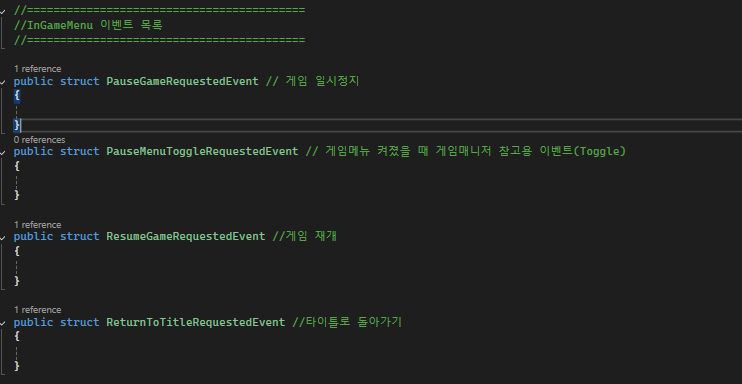 EventStruct에는 팀원들과 공유하고 공통의 이벤트를 알 수 있게 별도로 cs파일에 구분해서 찾을 수 있도록 구성했다.