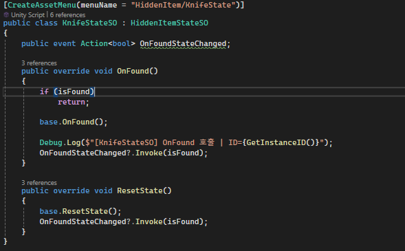 나이프를 찾았는지 아닌지에 대한 상태를 저장하는 SO파일을 만들고 해당 상태를 Action형태로 수신할 수 있게 한다