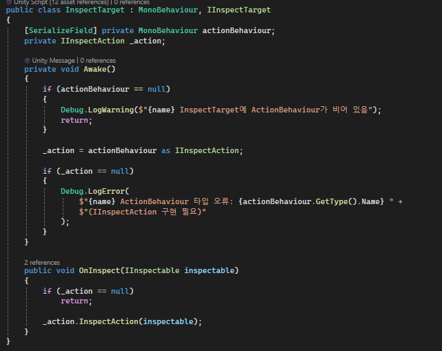 기존에 있던 InspectionHiddenTarget의 기능에서 좀 세분화해서 InspectionTarget과 클릭 시 사라지는 오브젝트