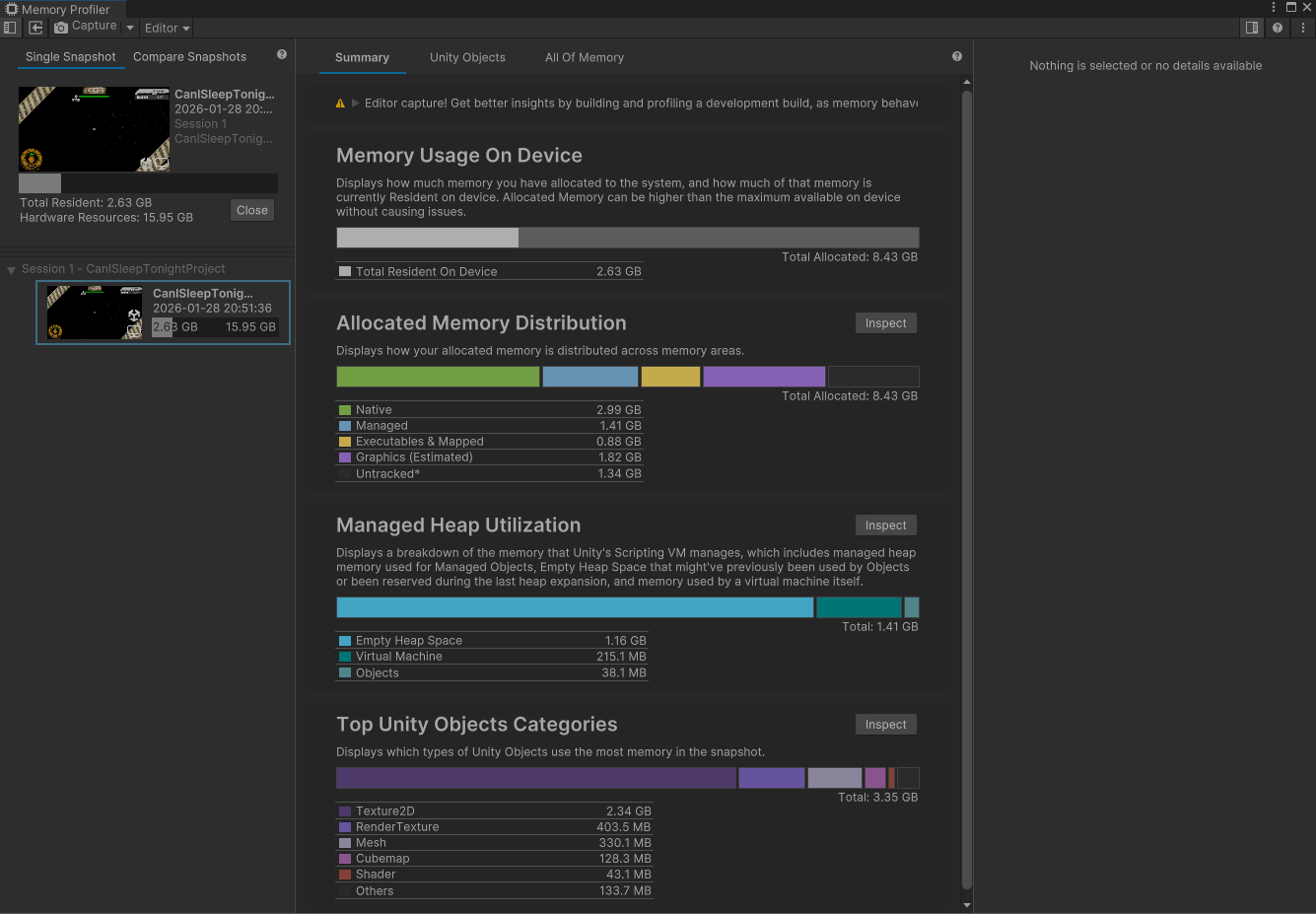 프로파일러를 켜봤는데, 이 정보에서는 주로 그래픽관련된 부분이 많이 표시됐기 때문에 '메모리 프로파일러' 라는 별도의 패키지를